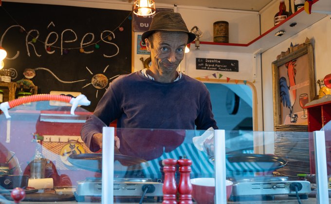 Mit seiner Crêperie „Chez Polo“ sorgt Polo für französische Gaumenfreuden auf dem Feldkircher Wochenmarkt. Ob pikant oder süss – jedes Crêpes mit viel Humor persönlich vom Chef zubereitet und serviert. Übrigens: Es werden nur regionale und Fairtrade-Produkte verwendet.