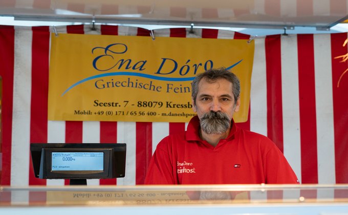 Mansour Daneshpour bringt ein Stück griechische Lebensfreude in die Feldkircher Innenstadt. "Alle Produkte werden aus griechischen, hochqualitativen Rohmaterialen ohne Zusatz chemischer Stoffe von uns selbst produziert, weiterverarbeitet und abgefüllt."