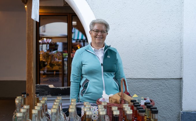 Sortiment: Brot, Zopf, Schnaps, Likör, Sirup und bäuerliche Saisonartikel
