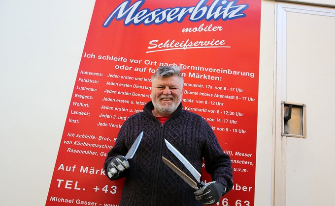 Seit 1999 auf Vorarlberg Märkten - schleifen und verkaufen von Messer und scharfen Haushalts- und Gartengeräten.