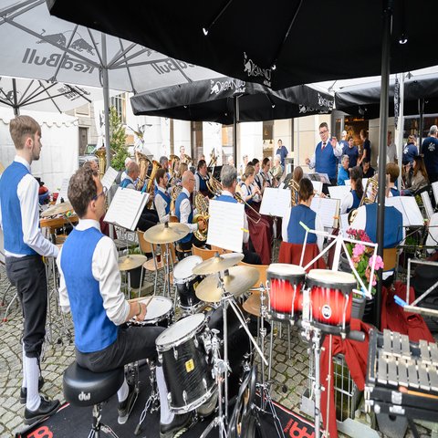 Mit "Pauken und Trompeten" wird auch 2025 wieder ein Rundklang der Blasmusik stattfinden. An mehreren Standorten werden in der Innenstadt verschiedene Kapellen die Gassen und Plätze mit Blasmusikklängen erfüllt.